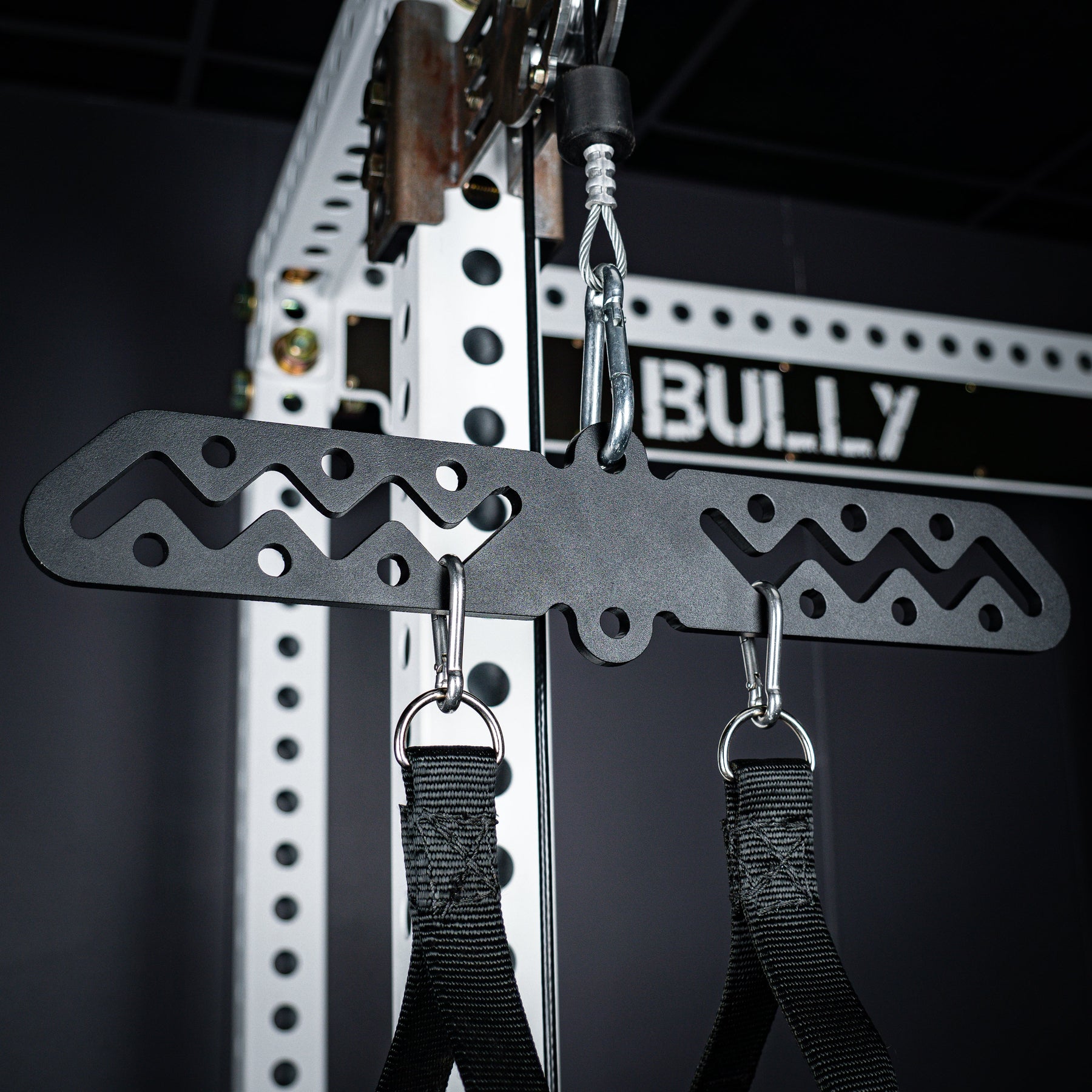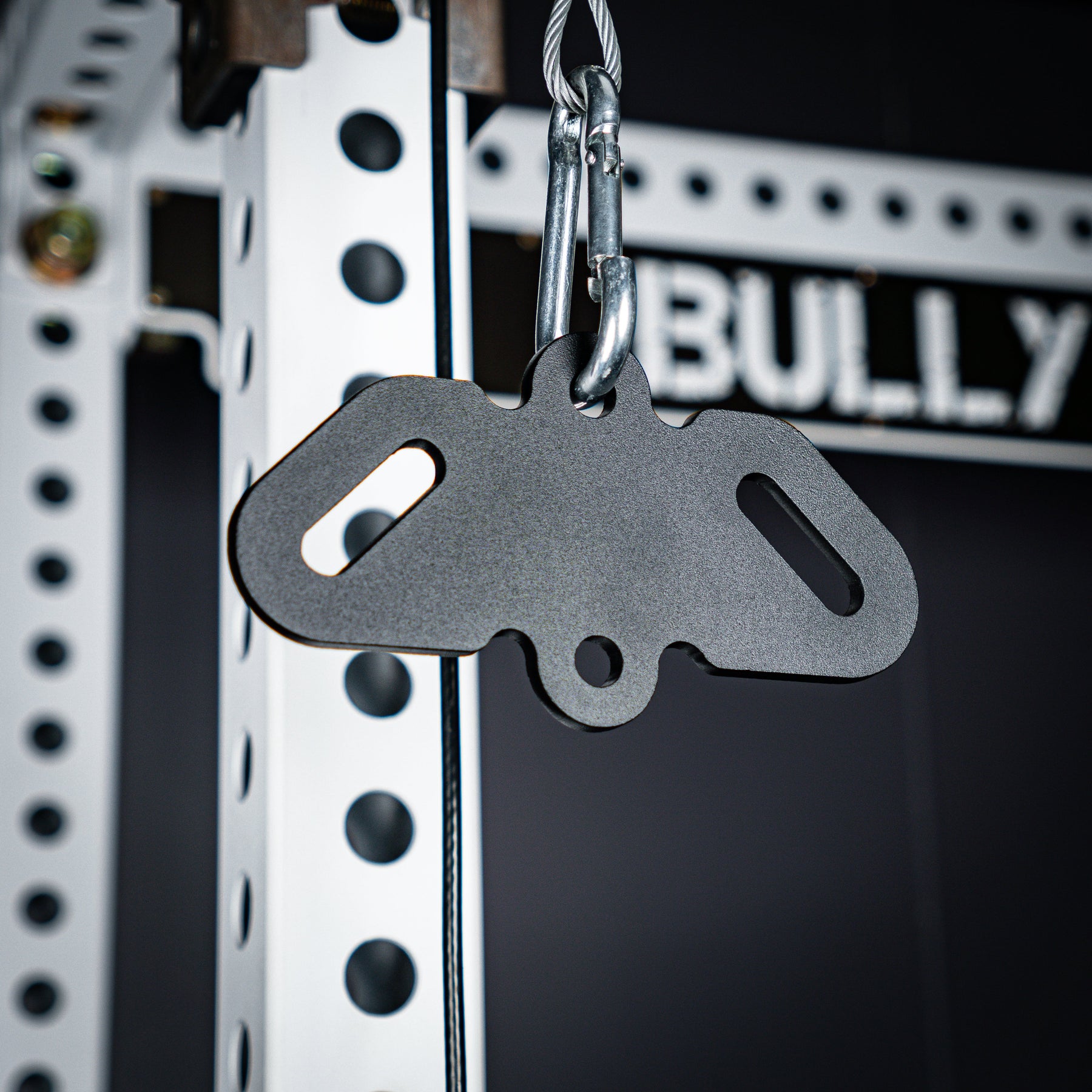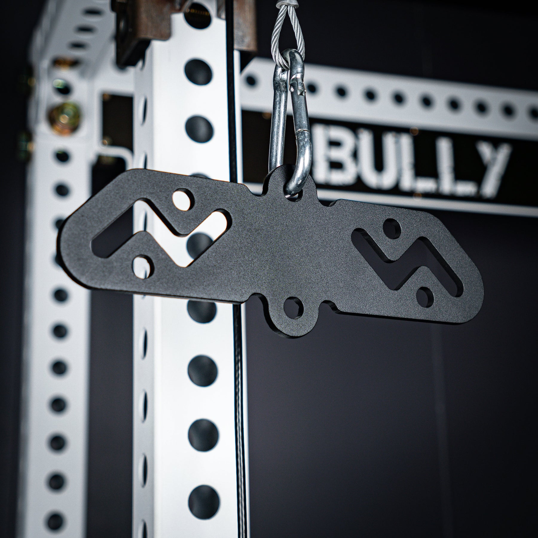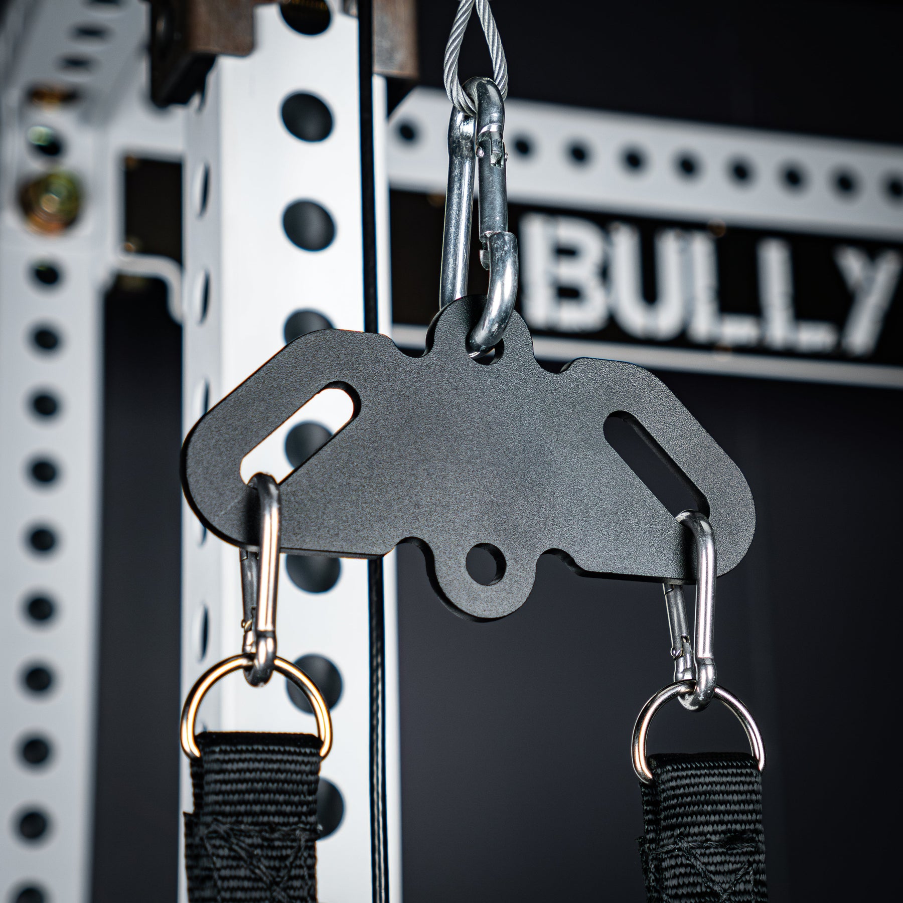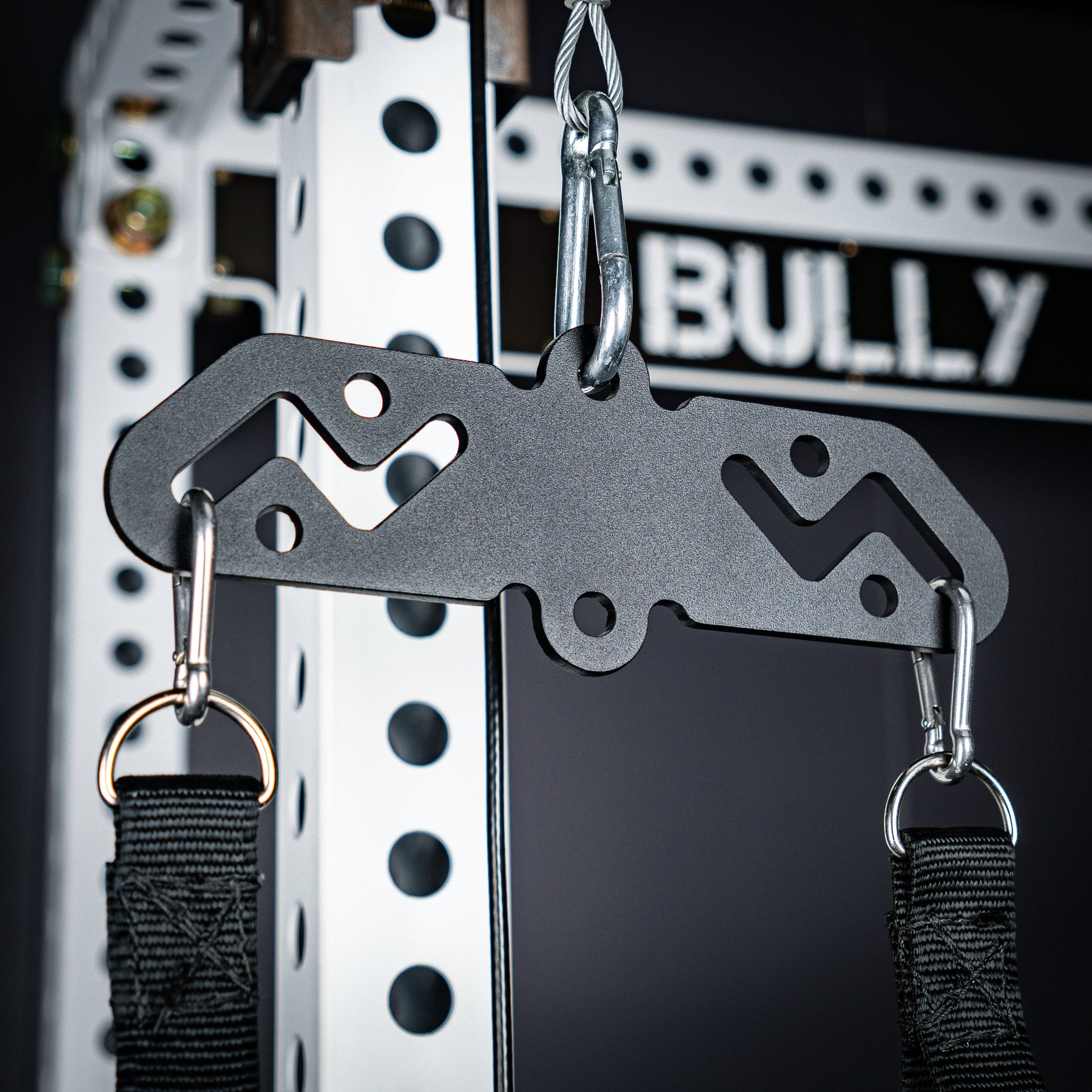 The Bully Hitch is our solution to turn a single carabiner attachment point into two. Designed and CNC cut in-house from heavy duty 1/4" thick CNC cut steel (Hitch & Hitch Mini) and 3/8" steel (Hitch XL). Our unique zig-zag center design allows quick adjustments on the fly without having to unclip your handles!