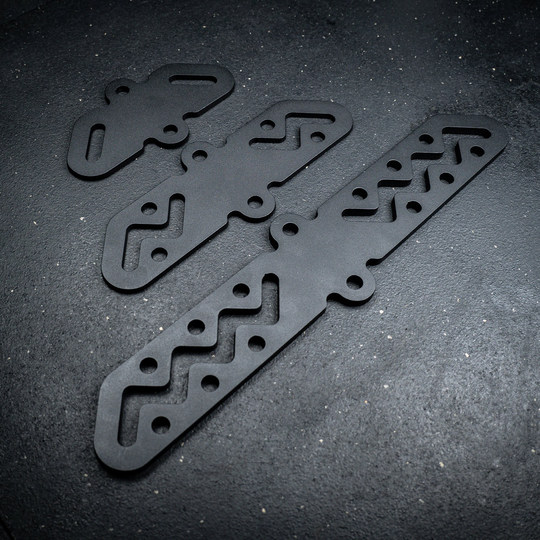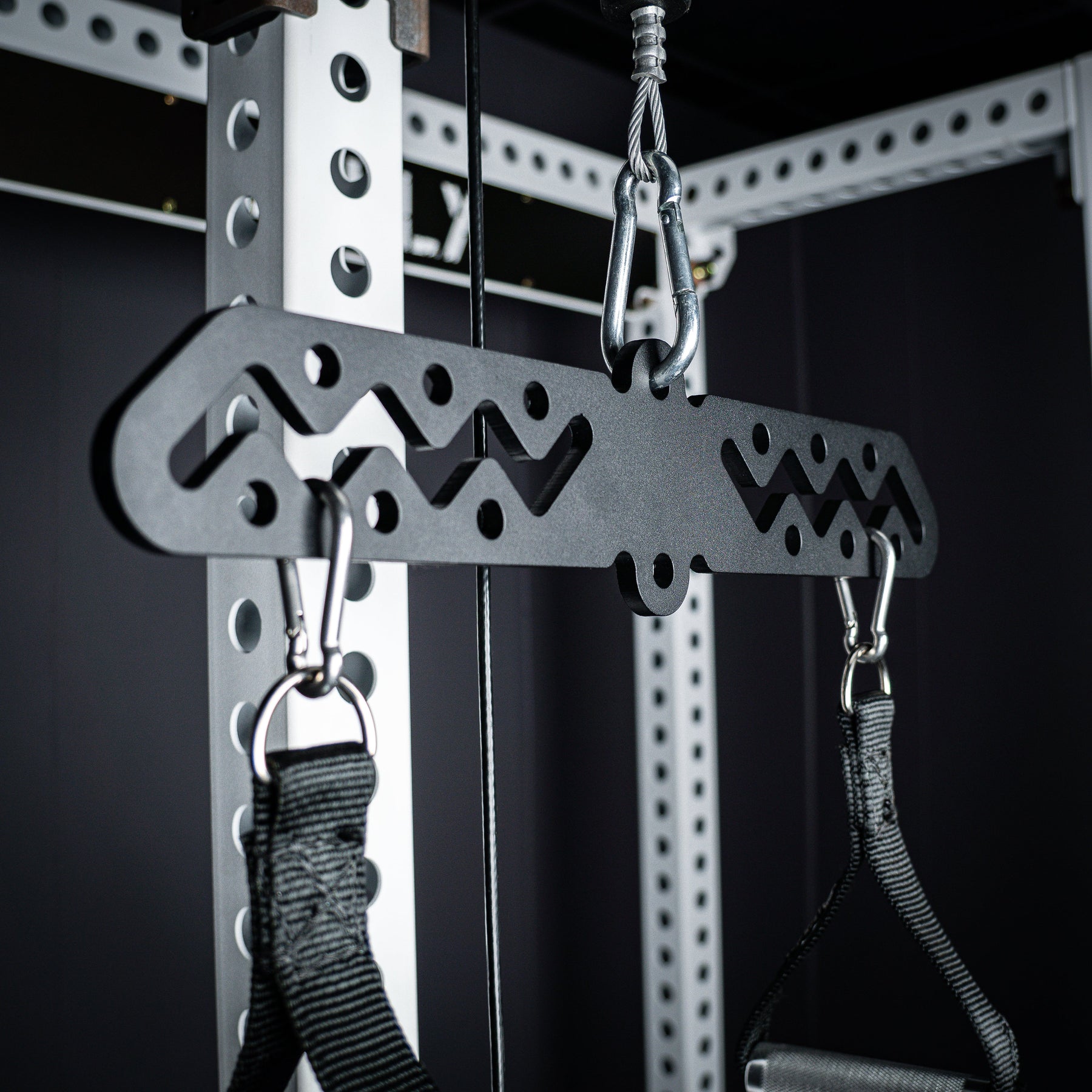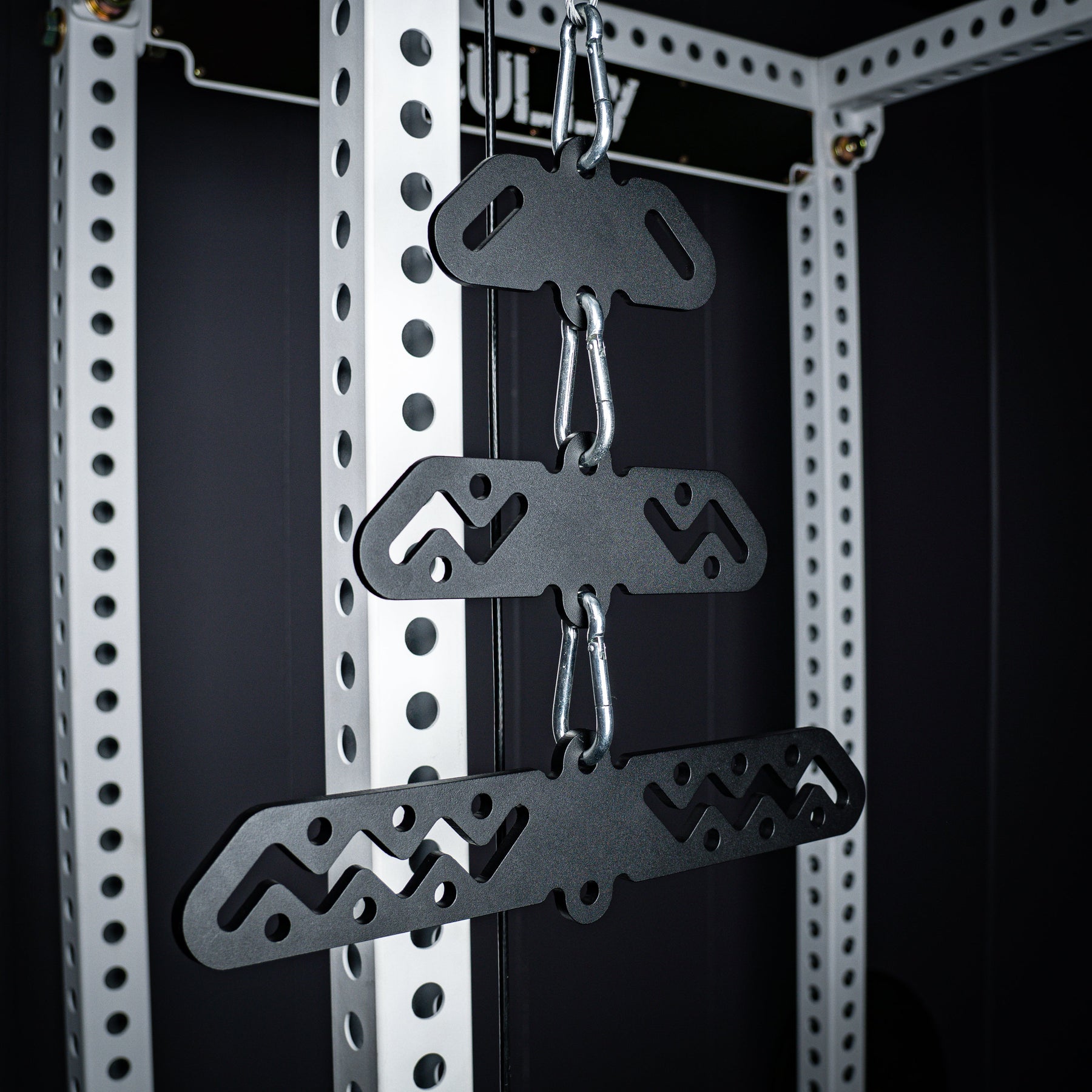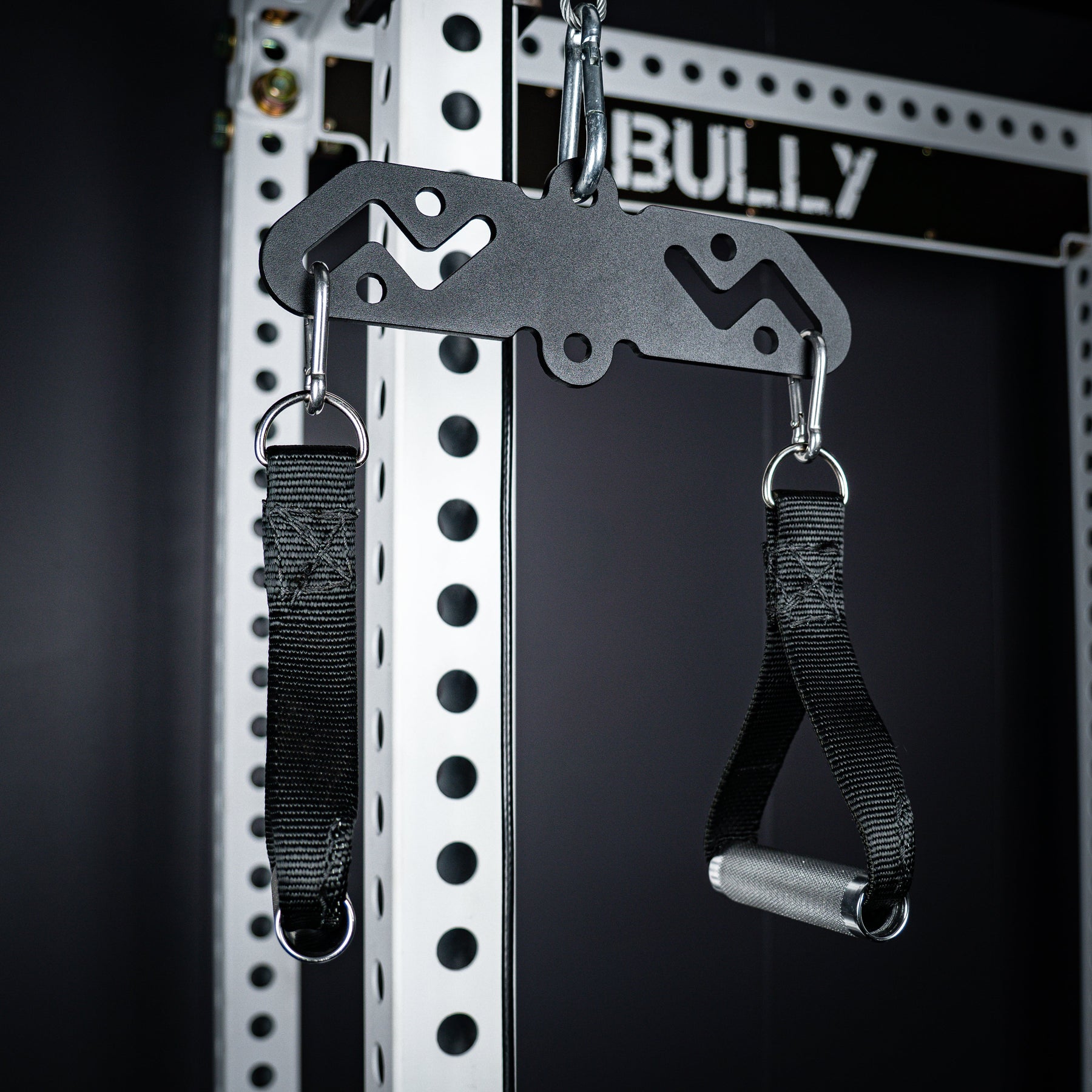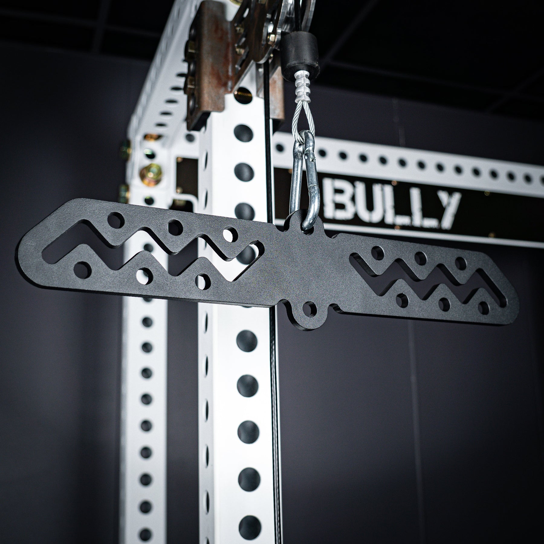 The Bully Hitch is our solution to turn a single carabiner attachment point into two. Designed and CNC cut in-house from heavy duty 1/4" thick CNC cut steel (Hitch & Hitch Mini) and 3/8" steel (Hitch XL). Our unique zig-zag center design allows quick adjustments on the fly without having to unclip your handles!