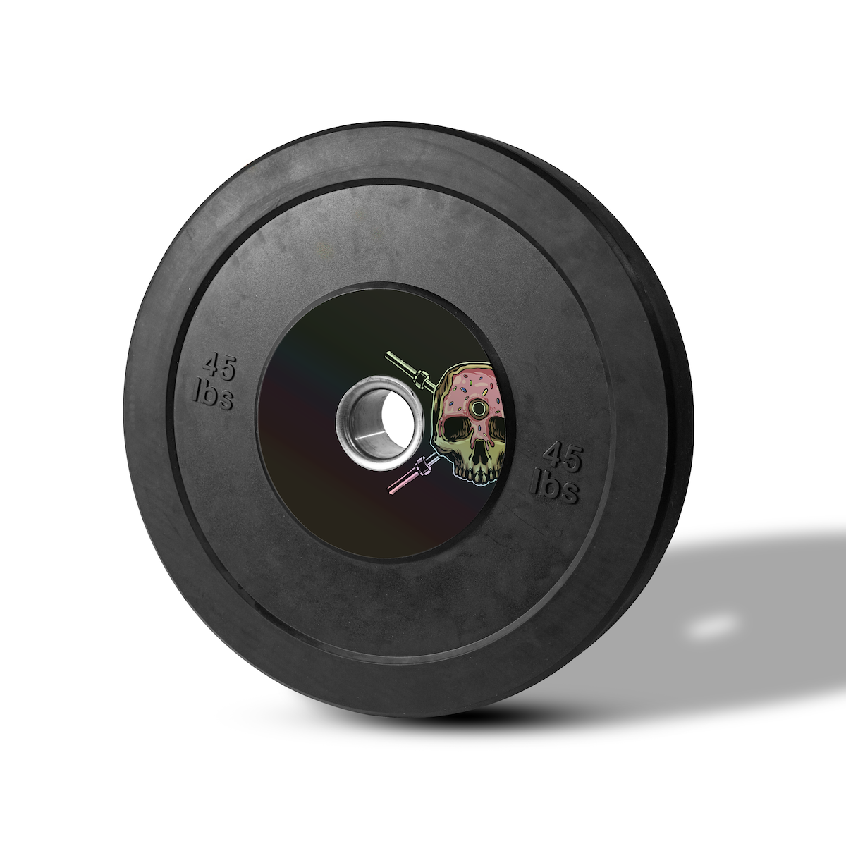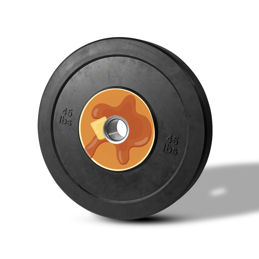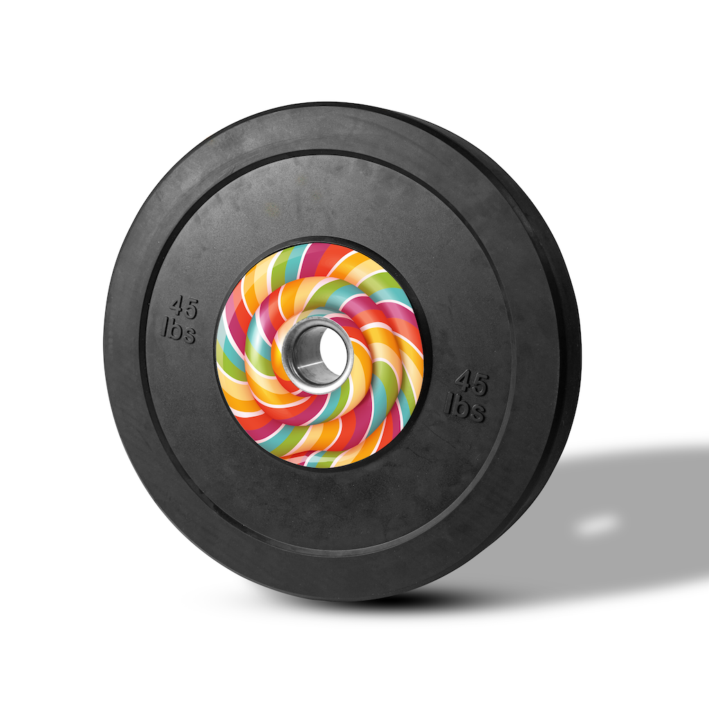 You can now add any of our Plate Snack designs to your bumper plates! This updated design will fit on the middle portion of your bumper weight plates to give a fun new look and feel to your gym.