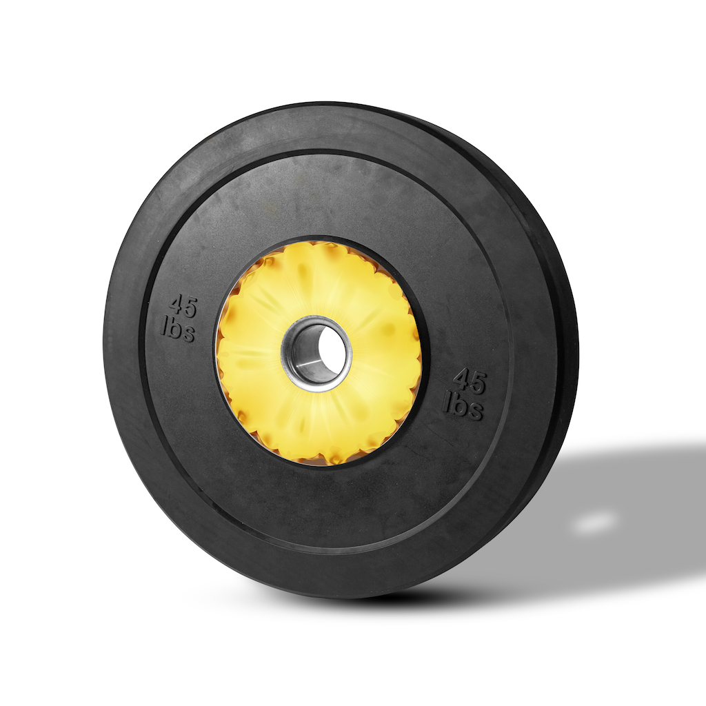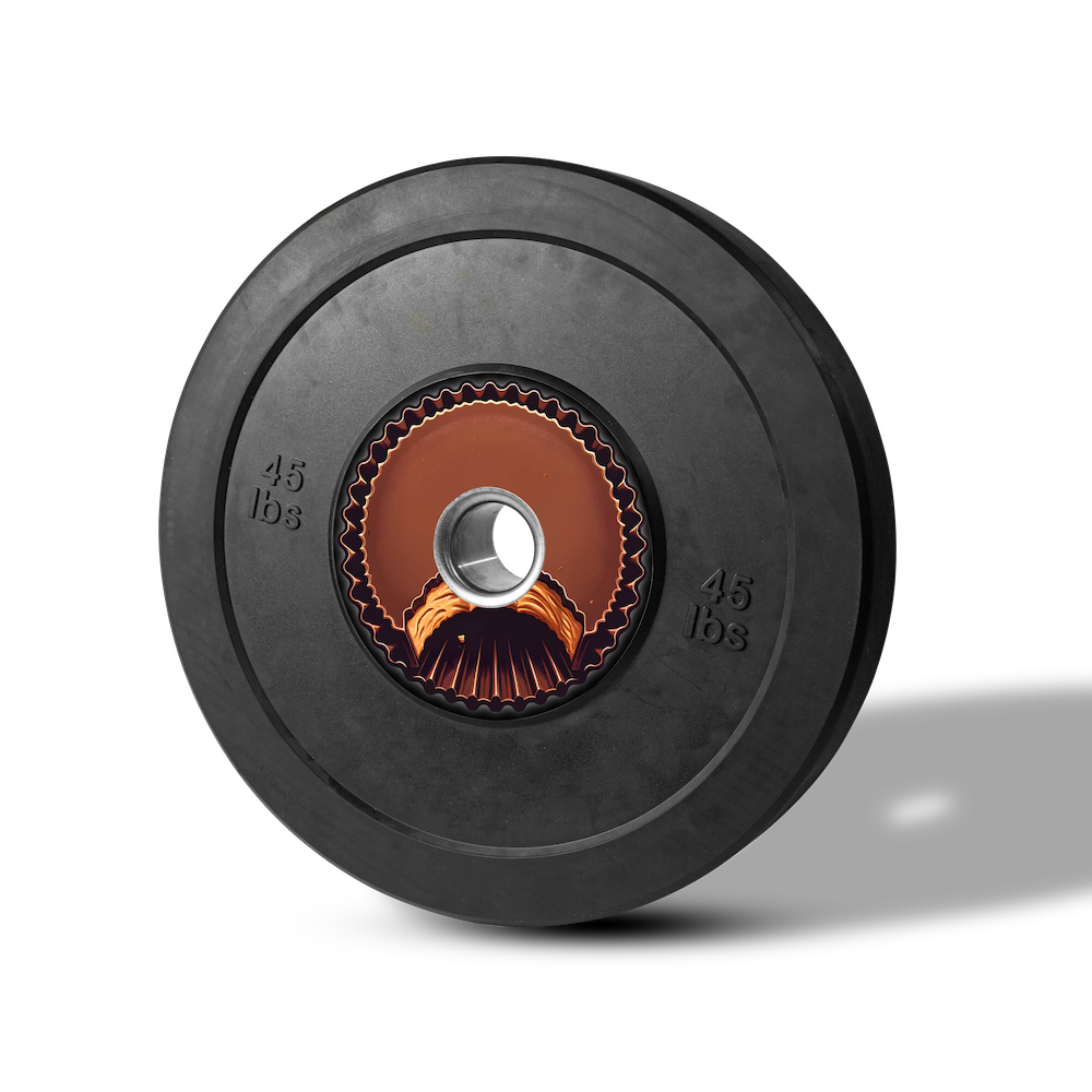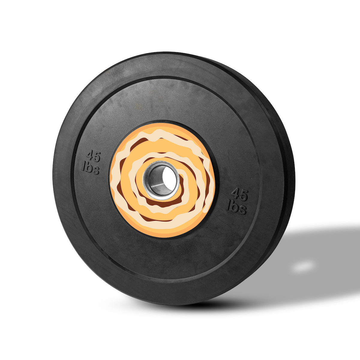You can now add any of our Plate Snack designs to your bumper plates! This updated design will fit on the middle portion of your bumper weight plates to give a fun new look and feel to your gym.