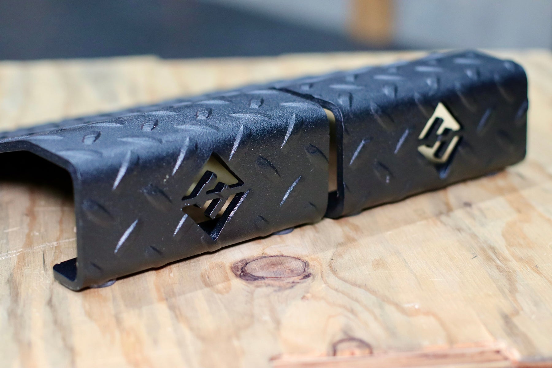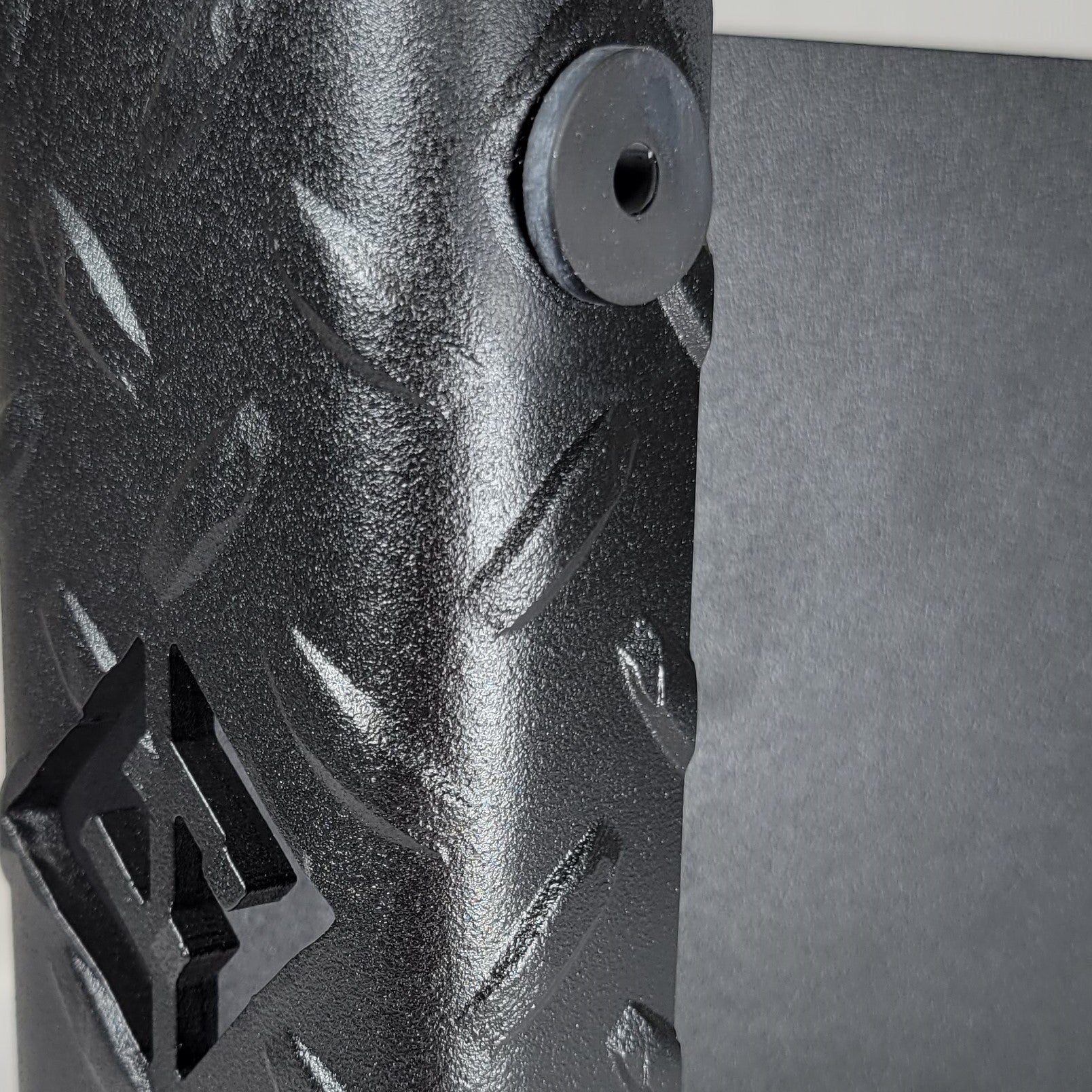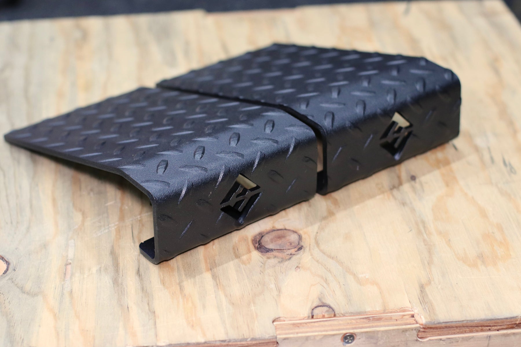 - Manufactured out of high strength 3/16" thick steel wedge with industrial grade, non-slip, steel diamond treadplate and textured powered coating, provides superior traction and a solid structure to withstand and deliver a secure footing while preforming heavier lifts while pre-assembled rubber bumpers keep the edges firmly in place.